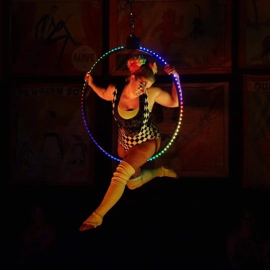 When I'm not glued to my computer screen, you'll find me attempting to defy gravity with aerial slings, lyras and silks or spinning a fire dragon staff with the grace of a three-legged giraffe. And let's not forget my undying love for animals – from ponies to lizards, fish to birds (including a cheeky blue jay that made our back porch his second home), chipmunks to miniature donkeys. I've shared my space with horses, a rat (you read that right), and a whole cast of wonderful cats. And then there's the dog versions of chaos and destruction.